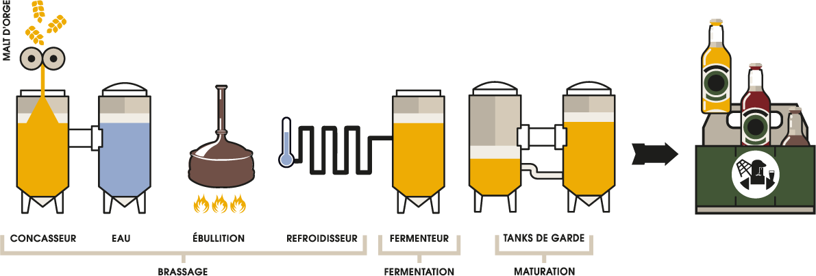 Après plus d’un siècle de silence, la tradition brassicole a repris vie en 1991 avec la réouverture de notre établissement sous le nom d'Au Brasseur. Soucieux de préserver la tradition et de perpétuer un savoir-faire ancestral, nous continuons, près de 30 ans plus tard, à élaborer et produire nous-mêmes toutes nos bières.